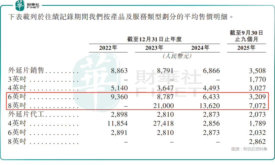 而各类尺寸外延片的平均售价均呈现出明显下降,其中最为核心的6英寸外延片的平均售价从2022年的9360元一路走低至2025年前三季度的3209元;被寄予厚望的8英寸外延片的平均售价则从2023年的21000元持续下降至2025年前三季度的7072元。