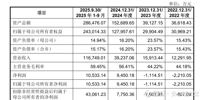 2025 年 1-9 月,公司实现营业收入 116,749.01 万元、扣非后净利润 43,061.23 万元, 财务状况和持续盈利能力显著提升。