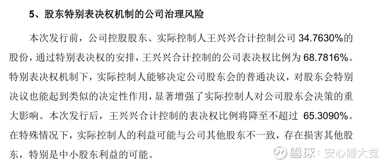 但由于特别表决权的缘故,王兴兴还是能够做到60%的绝对控制权的。