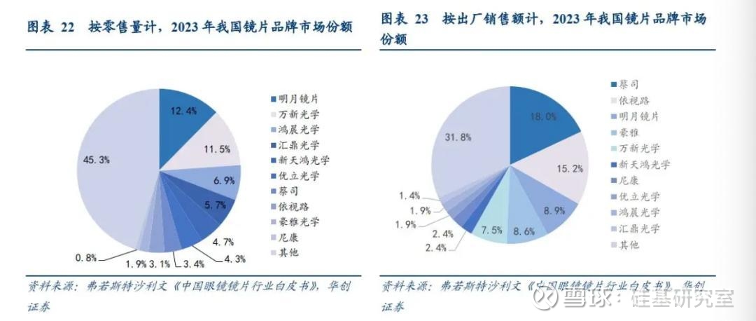 尽管明月镜片、康耐特光学目前均在发力自有品牌建设,明月镜片更是已完成战略1.0时代从「制造的明月」变到「品牌的明月」的跨越,但在高端市场上,国际品牌如依视路、HOYA和蔡司在功能性镜片、渐进多焦和品牌溢价方面具备强势地位。