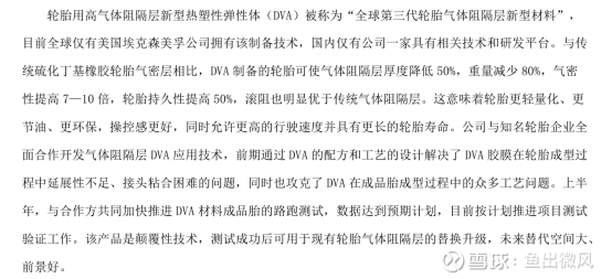 好,现在到重点了,DVA替代溴化丁基橡胶,如果重量只有溴化丁基橡胶的20%,那DVA定价多少? 如果定价30000元/吨,那每条胎DVA材料成本6元, 如果定价40000元/吨,那每条胎DVA材料成本8元,要知道16寸205的轮胎,售价只有200元左右,其中还包含了安装费,如果DVA按30000元/吨计算,单条胎降本14元,这个吸引力无疑是巨大的。