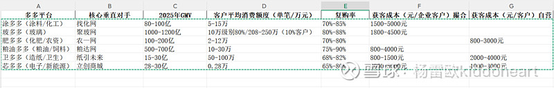 头部大客户(云工厂 / 集团):年采购 1000 w–5000 w / 家(占 GMV 70%+);中型工厂 / 经销商:年采购 200 万–800 万 / 家;小微 / 多多万店:年采购 30 万–100 万 / 家(成熟门店月 GMV 35 万)