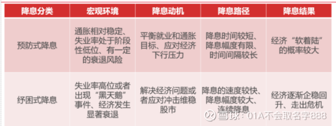 降息根据其发生时的经济表现可以大致分为两类,预防式降息和衰退式(或纾困式)降息。