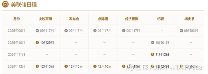2025年内,美联储还将在10月29日和12月10日公布利率决议。预计临近利率决议公布日,美元指数、黄金价格均会大幅震荡数日,投资者需要做好心理准备应对震荡。
