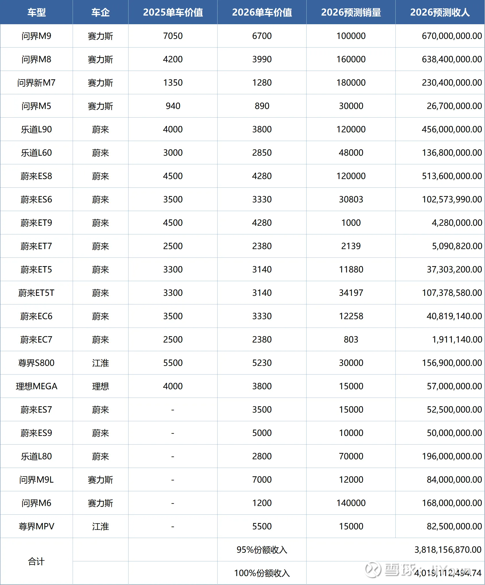 前文第 3 篇已经计算了老车型的 2025 年单车产值,同时我们还需要对 26 年发布的新车型做好单车产值预测