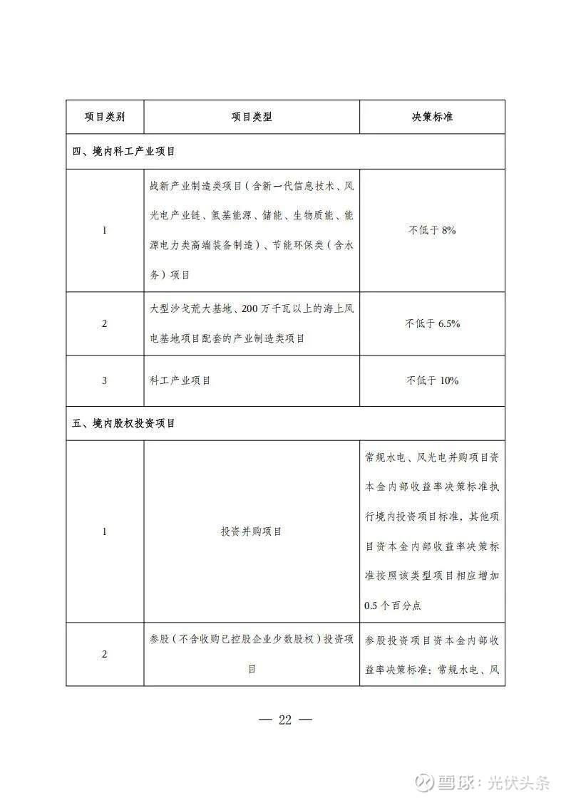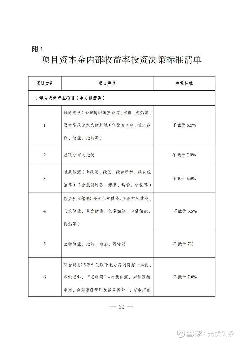 风电光伏及大型风光水火储基地等项目不低于6.5%;屋顶分布式光伏不低于7%;储能项目不低于6.5%。