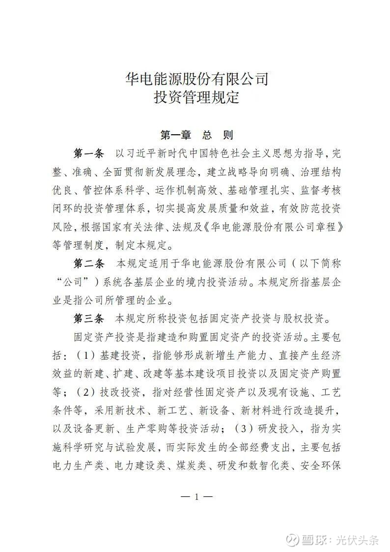 氢能汇获悉,12月6日,华电能源发布《华电能源股份有限公司投资管理规定》 。