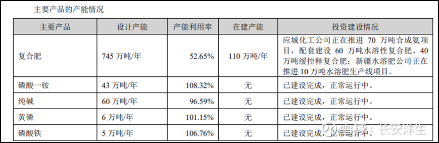 2024年底,复合肥产能745万吨,在建产能110万吨。(应城70万吨合成氨配套60万吨+40万吨复合肥;新疆在建复合肥10万吨)一个小问题:产能利用率55%。为何还要在建?可能是因为地域问题?