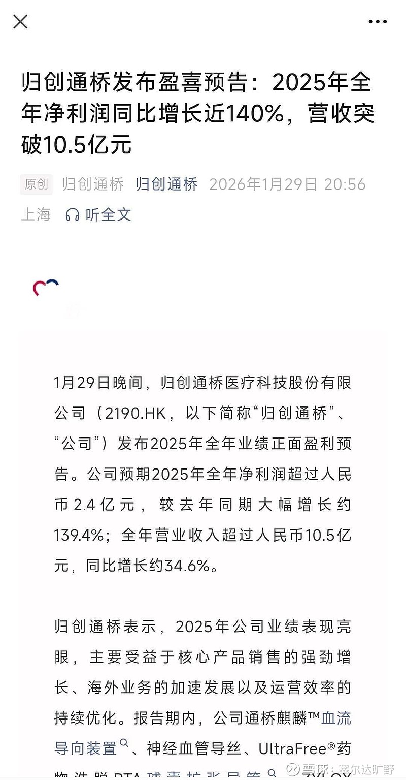 $归创通桥(02190)$ 晚上不错的小惊喜。净利润增长近1.4倍,远超营收增速,说明公司的规模效应开始显现,运营效率提升,毛利率保持稳定。这证明了公司不仅卖得多,而且赚得更高效了,从投入期开始到兑现期了。