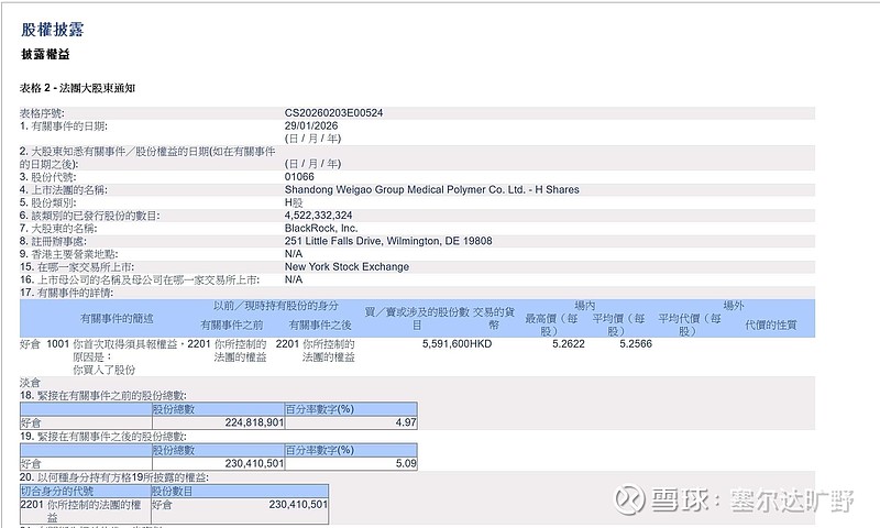 Black rock的速度够快的,去年底的时候持股比例才2.01%,1个半月后,现在一下子居然举牌了。直接干到第二大股东了吧。