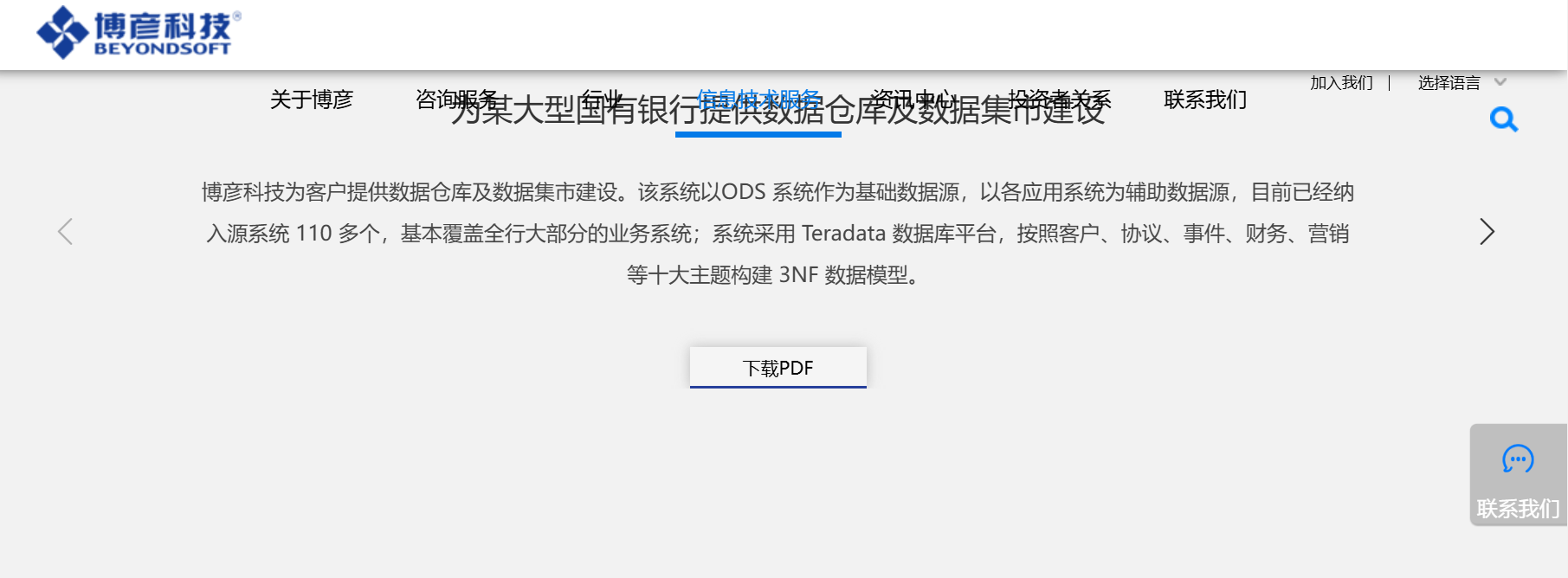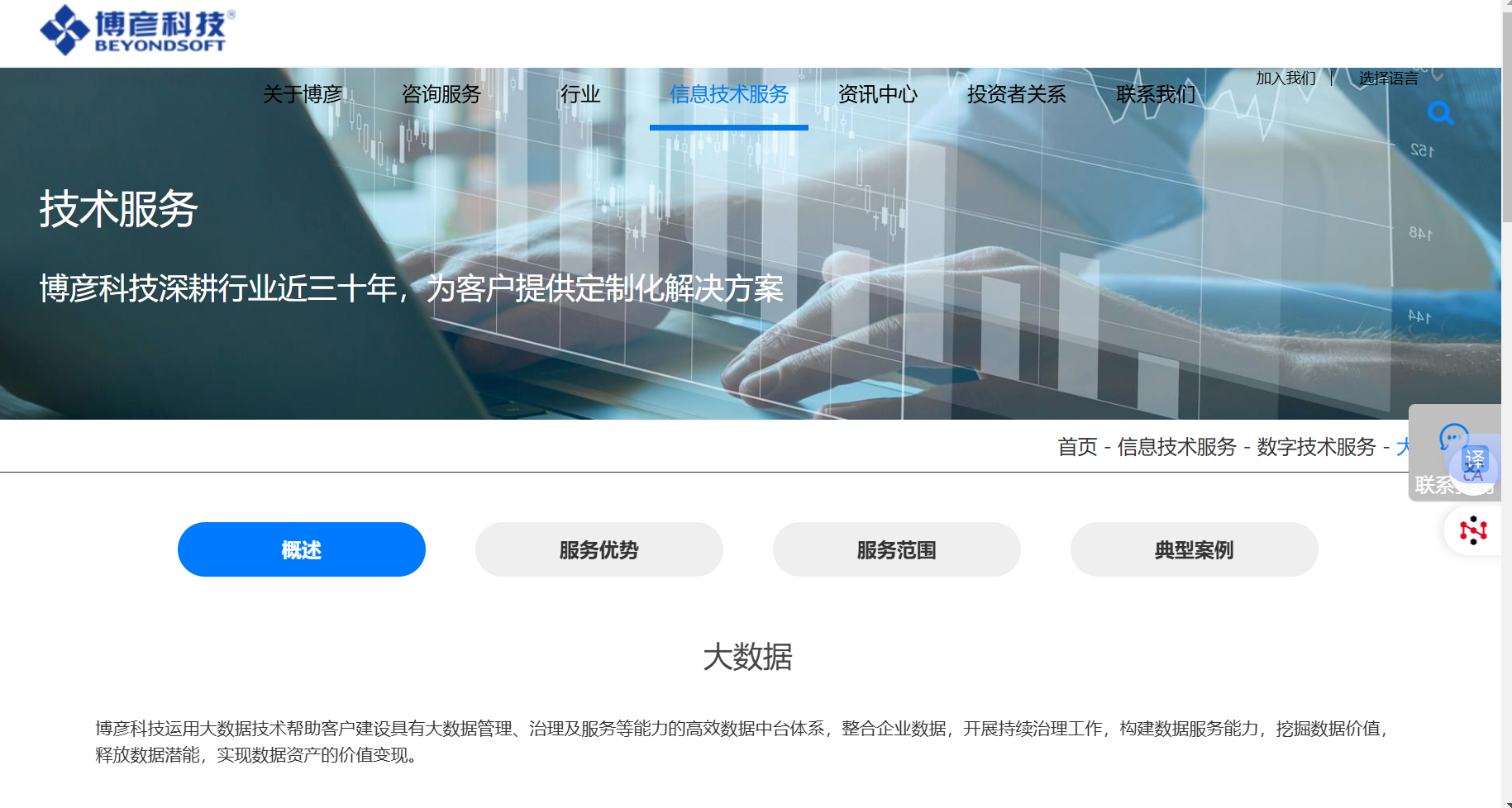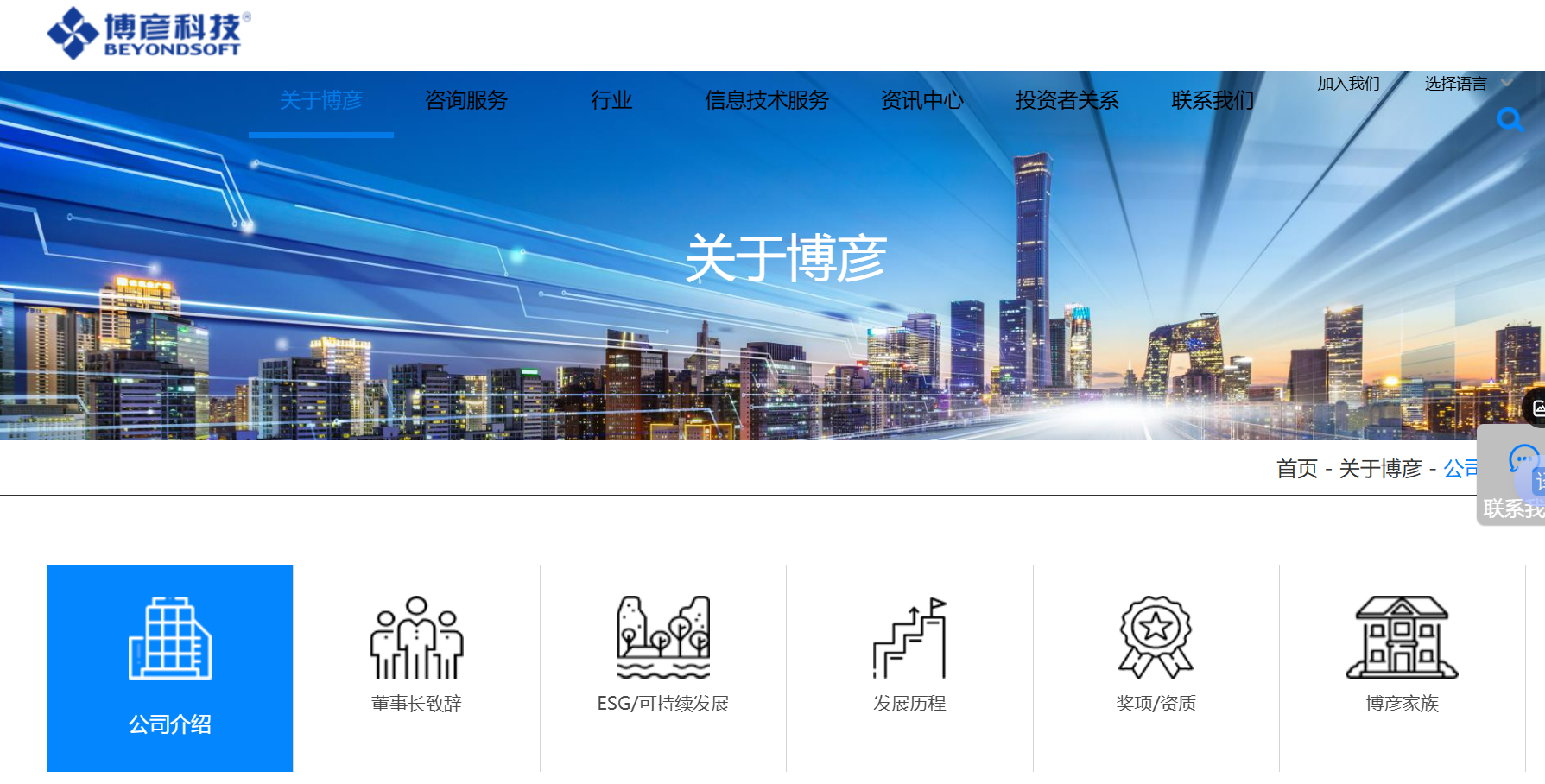 博彦科技成立于1995年,业务面向全球,是一家提供咨询、行业解决方案、数字技术服务、业务运营服务等多元领域服务的数智技术服务提供商。公司在金融、高科技、互联网、能源、制造、农业等众多领域积累了丰富经验,服务了众多世界500强及中国500强企业。目前全球员工总数超30000人,旗下子公司、研发与交付中心覆盖十三个国家的主要城市 。