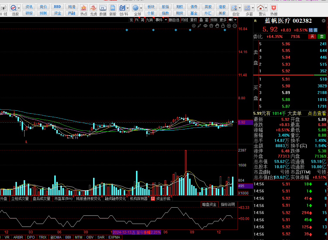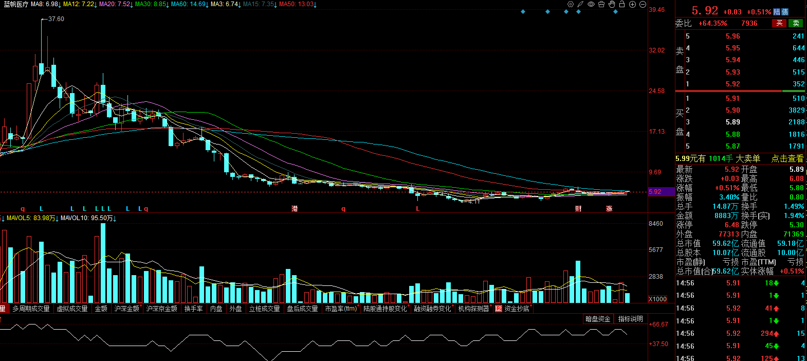 $蓝帆医疗(SZ002382)$ 这些亏损大幅提升的消息,内部人士及一些机构,应该早都清楚了,所以不管行情好孬,都不大幅拉升,反复小幅上下波动,5.9元-5.95元,之间常常挂有大额买单,每每假突破,让人抱有希望,再继续失望,愤而离去,这次预亏公告一出,估计下周一,会大幅低开,预计最低价5.55-5.70元之间,如果出现这个价位,我会多补买一些,但不全压,继续保持一定的风险意识。买入4000股左右甚至更多。