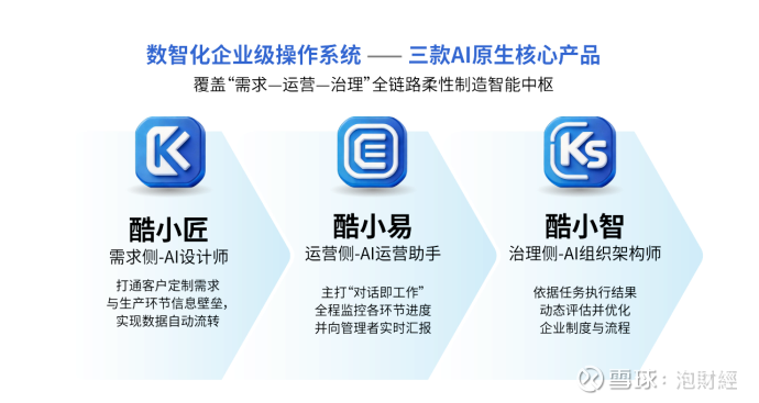 其中,“酷小匠”打通客户定制需求与生产环节的信息壁垒,实现从客户创意到车间生产的数据自动流转,无需人工转译;“酷小易”主打“对话即工作”模式,可将AI生成的策略实时转化为具体任务,全程监控各环节进度并向管理者实时汇报,保障任务高效推进。“酷小智”助力企业实现敏捷试错、持续迭代。支持自然语言开发与零代码应用生成,让业务人员可直接参与创新实践。