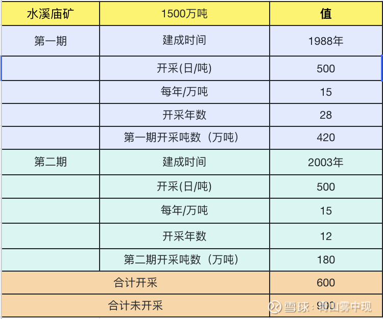 水溪庙矿区余矿小结:共1500万吨,累计已采600万吨,剩余900万吨