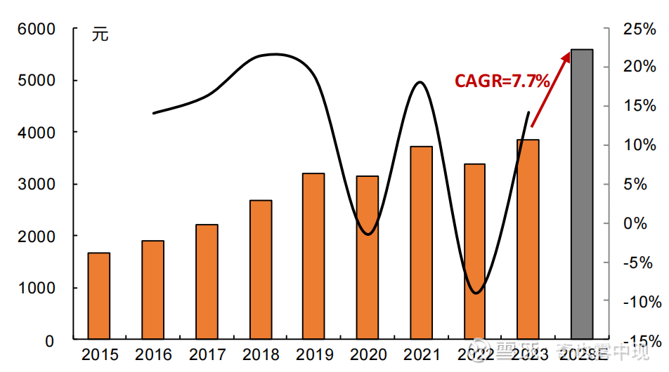 下游需求稳定增长:2005-2024 年需求量 CAGR 达到 11.8%,且表需增速高于下游服装鞋帽、针、纺织品类零售额增速。据欧睿国际预测,2023-2028 年我国运动服饰市场规模 CAGR 约为 7.7%(历史数据看,氨纶未来3年需求增长是高于7.7%的)