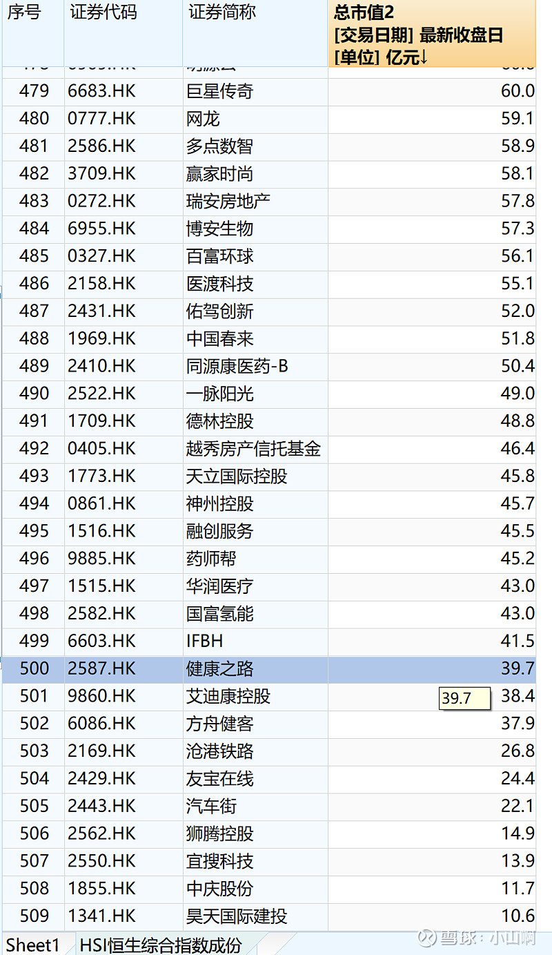 另外文件里面有个条件,过去12个月的平均月末市值肯定也都是大于40e,这个肯定是能满足的,核心就是看能不能留在恒生综指里面了。