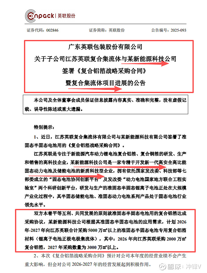 2027年:宁德时代固态电池小批量生产。结论:宁德时代、ATL等龙头电池厂商的持续下单,标志着复合集流体产业已从概念导入迈向规模化量产。在这一产业浪潮中,建议优先关注壁垒最高、业绩能见度最强的设备龙头东威科技,以及已获得重磅订单、与巨头深度绑定的材料厂商洁美科技。同时,密切跟踪宝明科技和英联股份在其细分技术路线上的量产进展和客户拓展情况。$东威科技(SH688700)$ $英联股份(SZ002846)$