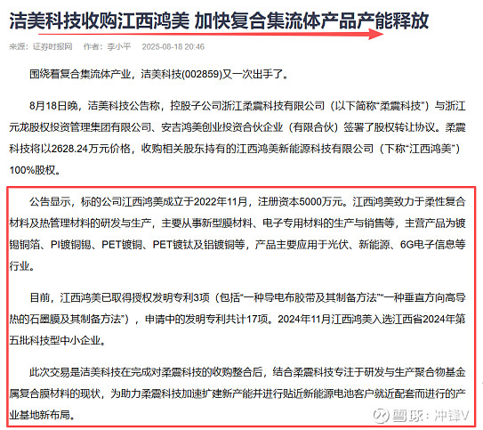 并购扩张:收购江西鸿美100%股权,整合柔震科技,实现"基膜-材料-制造"一体化布局