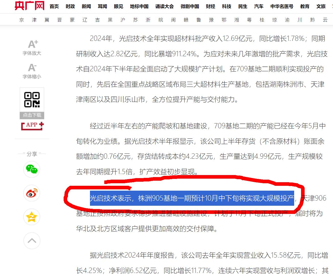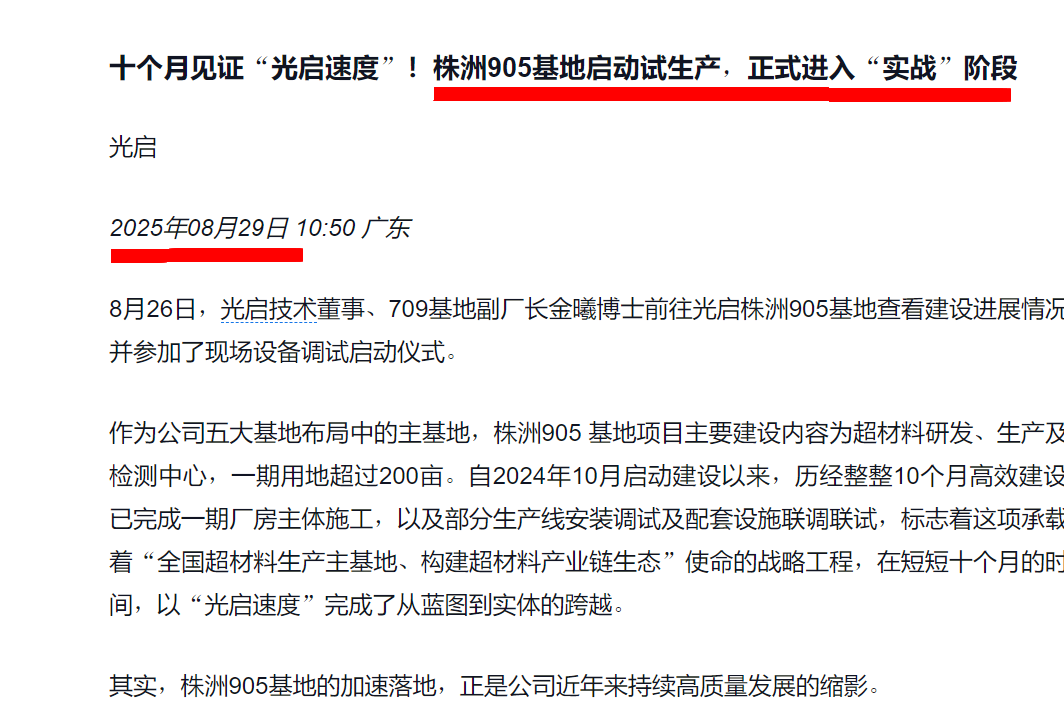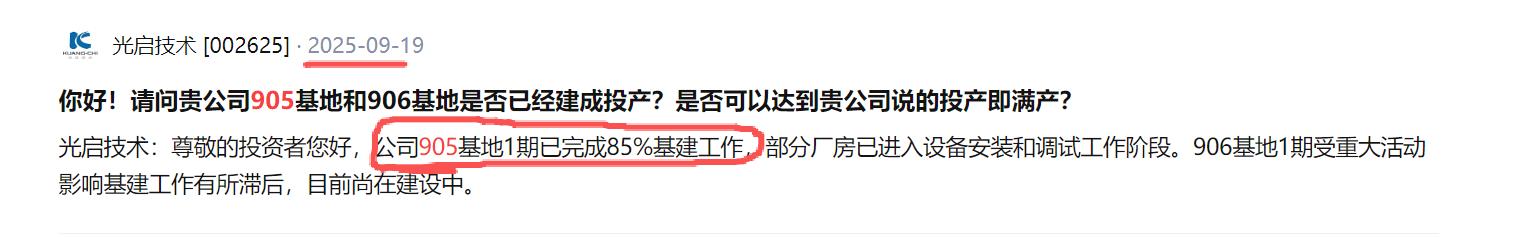 11月19日讯,有投资者向光启技术(002625)提问, 董秘你好,请问905基地计划什么时候正式投产?谢谢。
