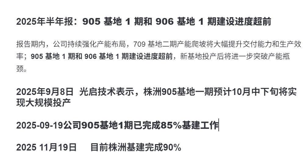 报告期内,公司持续强化产能布局,709 基地二期产能爬坡将大幅提升交付能力和生产效率;905 基地 1 期和 906 基地 1 期建设进度超前,新基地投产后将进一步突破产能瓶颈。