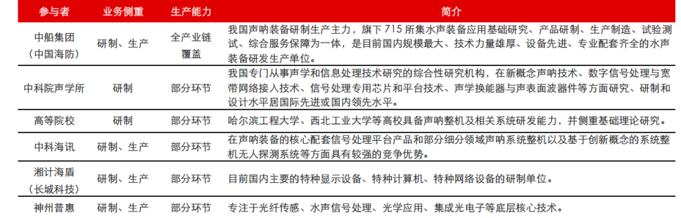 仅包括中国海防、中科海讯、中科院声学所、长城科技、神州普惠以及一些高校企业。