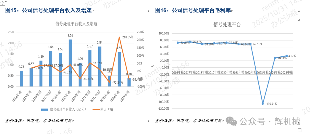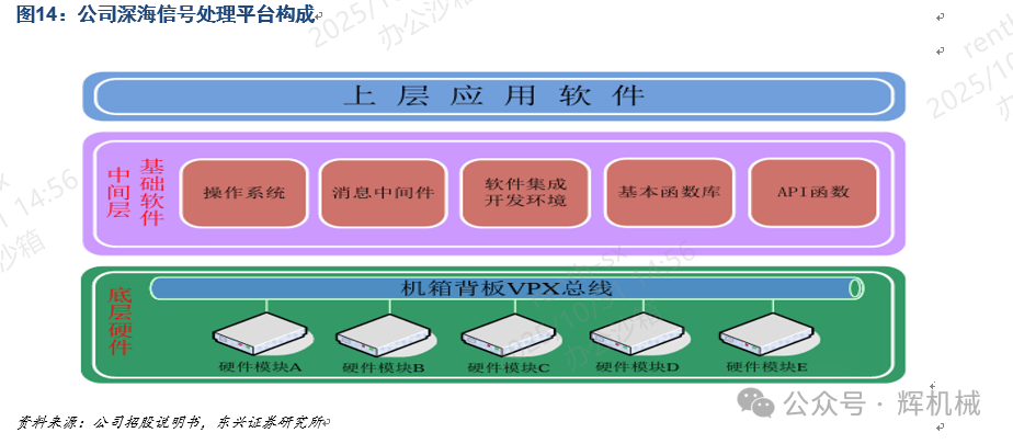 公司信号处理平台应用广泛,涵盖特种作业船只、水下观通、探测识别等领域。其架构采用垂直分层与模块化设计,由硬件、基础软件、应用软件组成,开放性强,便于开发与扩展。国产化第三代平台的嵌入式系统、开发环境及通信中间件等软件均为自主可控,拥有完全知识产权。公司紧跟技术趋势,推出通用信号处理机等系列产品,并基于GPU芯片研发新一代国产化平台,包括异构高性能处理平台、HX-A200核心芯片及数据计算平台等。2025年上半年公司信号处理平台收入0.40亿元,同比下滑54.5%,毛利率34.57%,同比下滑11.07个百分点,主要因订单交付节奏变化所致。深海信号处理平台作为保障海洋安全与资源开发的核心技术,未来随着人工智能、大数据等技术在深海领域应用场景不断丰富,公司信号处理平台需求有望持续攀升。