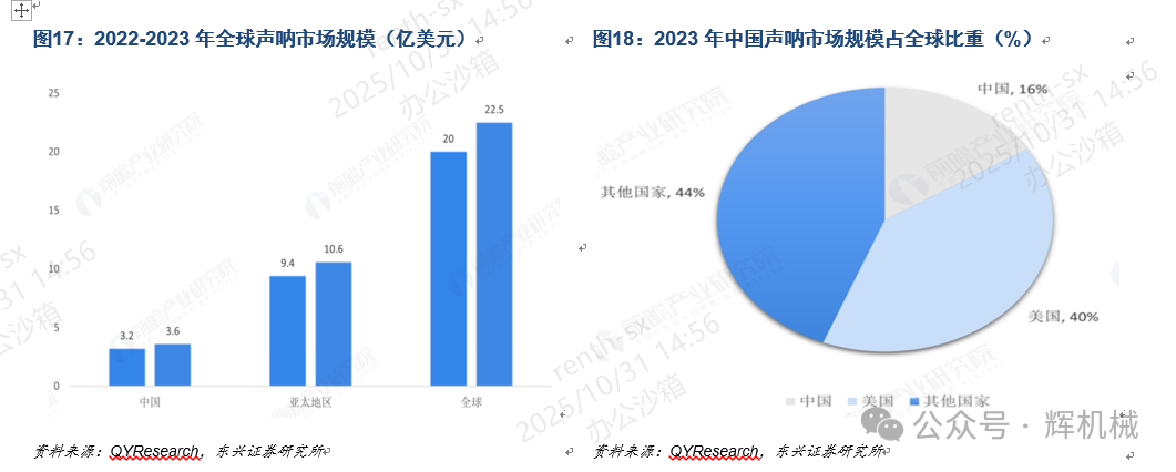 声纳系统是利用声波对水下物体进行探测、定位和识别的设备总称,用于搜索、跟踪水中目标并进行通信导航。公司具备全系统设计生产能力,近年推出前视避碰声纳、智能声纳、拖曳阵声纳等系统级产品,以及声纳核心算法、水听器、通信模块等配套产品。随着人工智能和大数据技术发展,声纳装备正向无人化、智能化方向升级,为公司产品拓展提供了广阔空间。根据QYResearch的数据显示,全球声呐市场在2023年市场规模达到22.5亿美元,中国市场在2023年达到了3.6亿美元。根据QYResearch的数据显示,美国声呐市场规模占全球声呐市场总规模的40%。中国声呐市场规模仅次于美国,占比为16%。根据前瞻产业研究院预测,中国声呐市场规模预计在2030年将涨至7.1亿美元,呈现出9.5%的复合增长率。