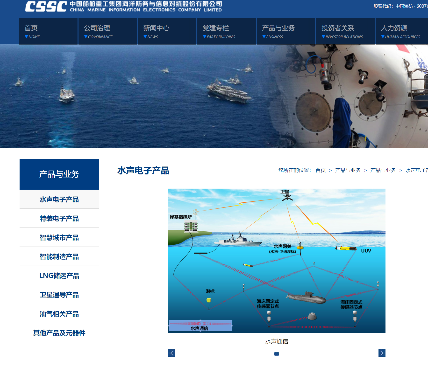 除水声装备外,中船集团电子信息业务板块还涵盖水面舰船等雷达、电子对抗、作战系统、指控系统、通信与导航、信息系统总体、光电和光电对抗、火控系统等行业领域。