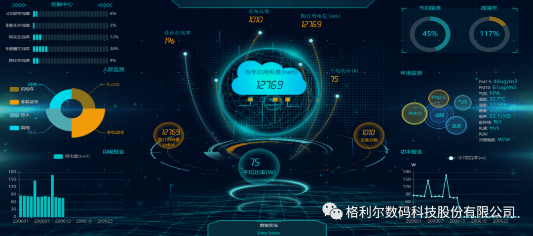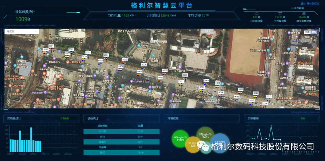 通过格利尔智慧城市云平台管理系统,使全线路灯可实现远程无线单灯开关、可调光、故障诊断、位置管理等功能,多媒体信息显示屏可实现远程无线即时的发布各类交通信息、天气预报、社会公益广告等功能。