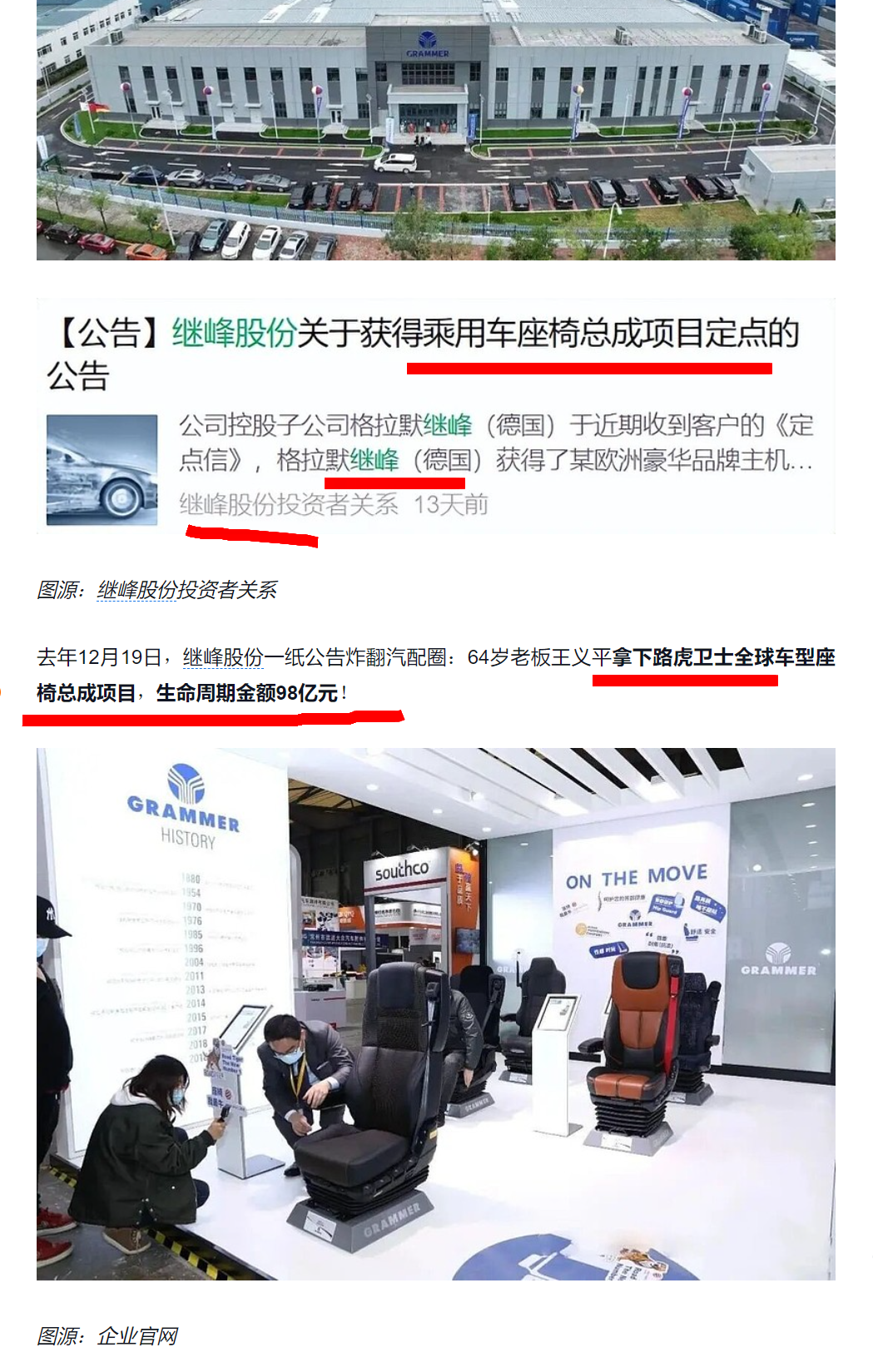 现状: 继峰股份的控股子公司格拉默在欧洲(塞尔维亚、捷克、斯洛伐克、德国等)拥有庞大的生产基地。