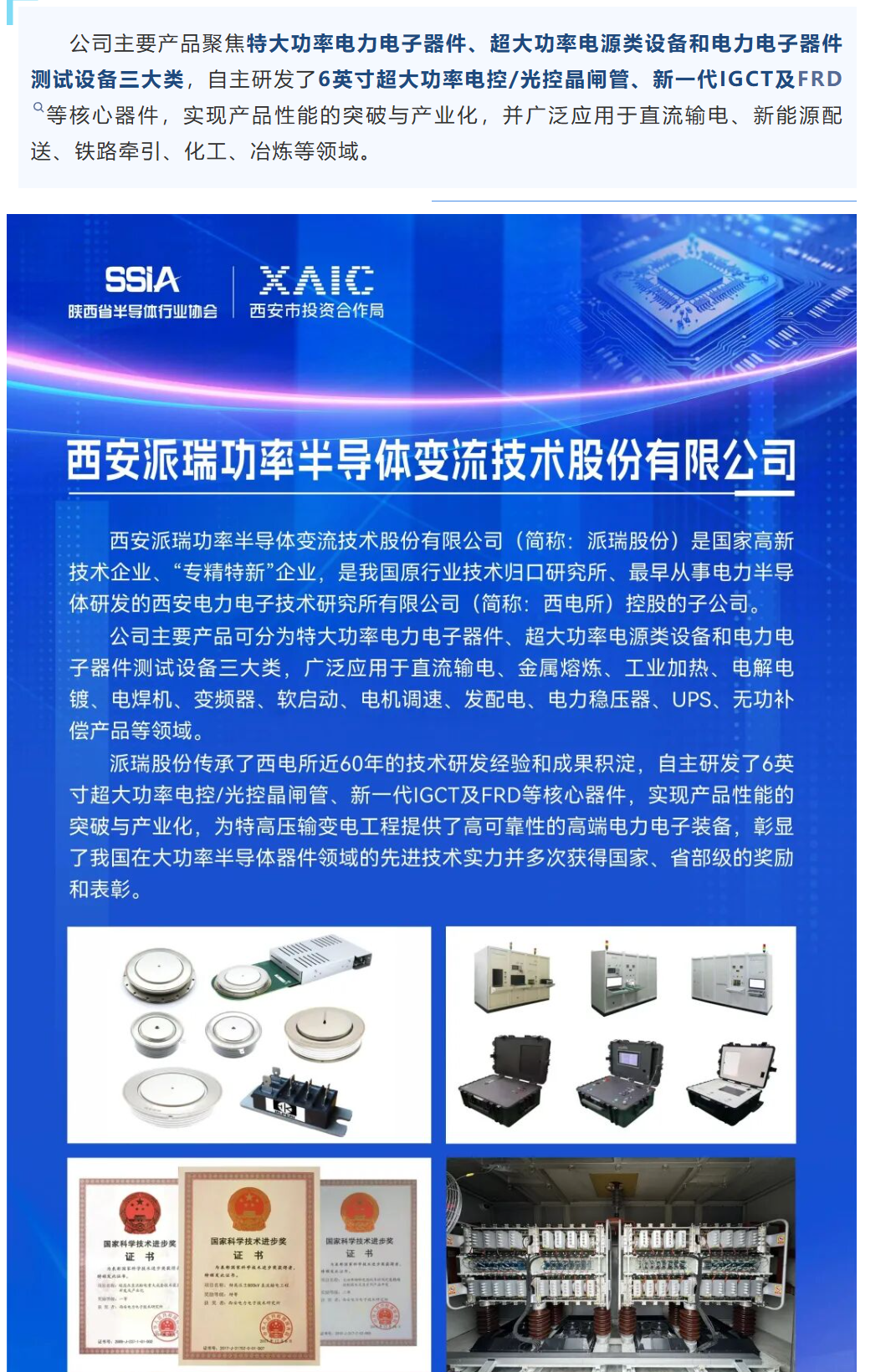 派瑞股份脱胎于西安电力电子技术研究所(西电所),该所是我国电力半导体器件的发源地,曾研制出中国第一只整流管、晶闸管等多种电力半导体器件。