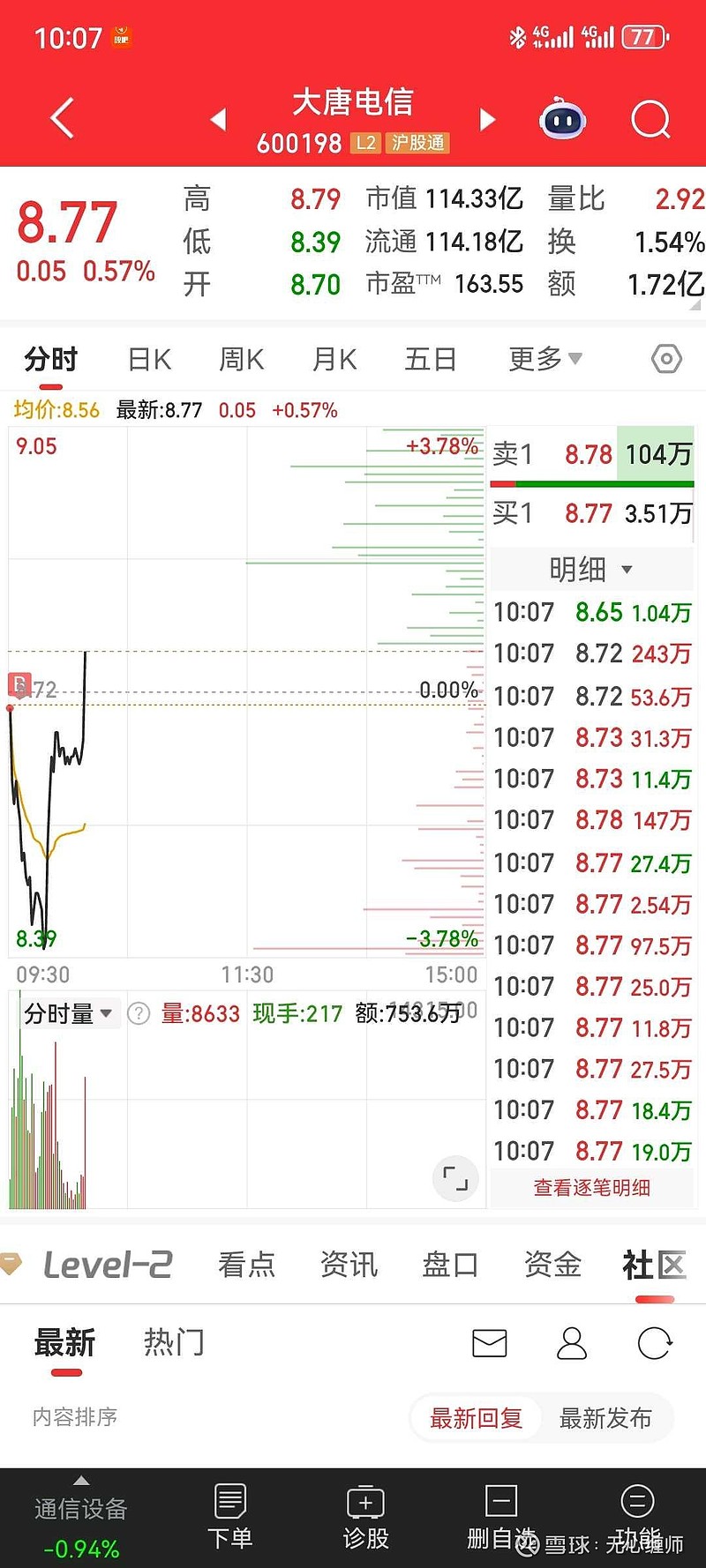 ,第一个没想到会砸这么深,第二没想到会这么快拉回来。我周末复盘的时候还以为今天这票能炒一下卫星通讯,甚至意淫开盘秒板。