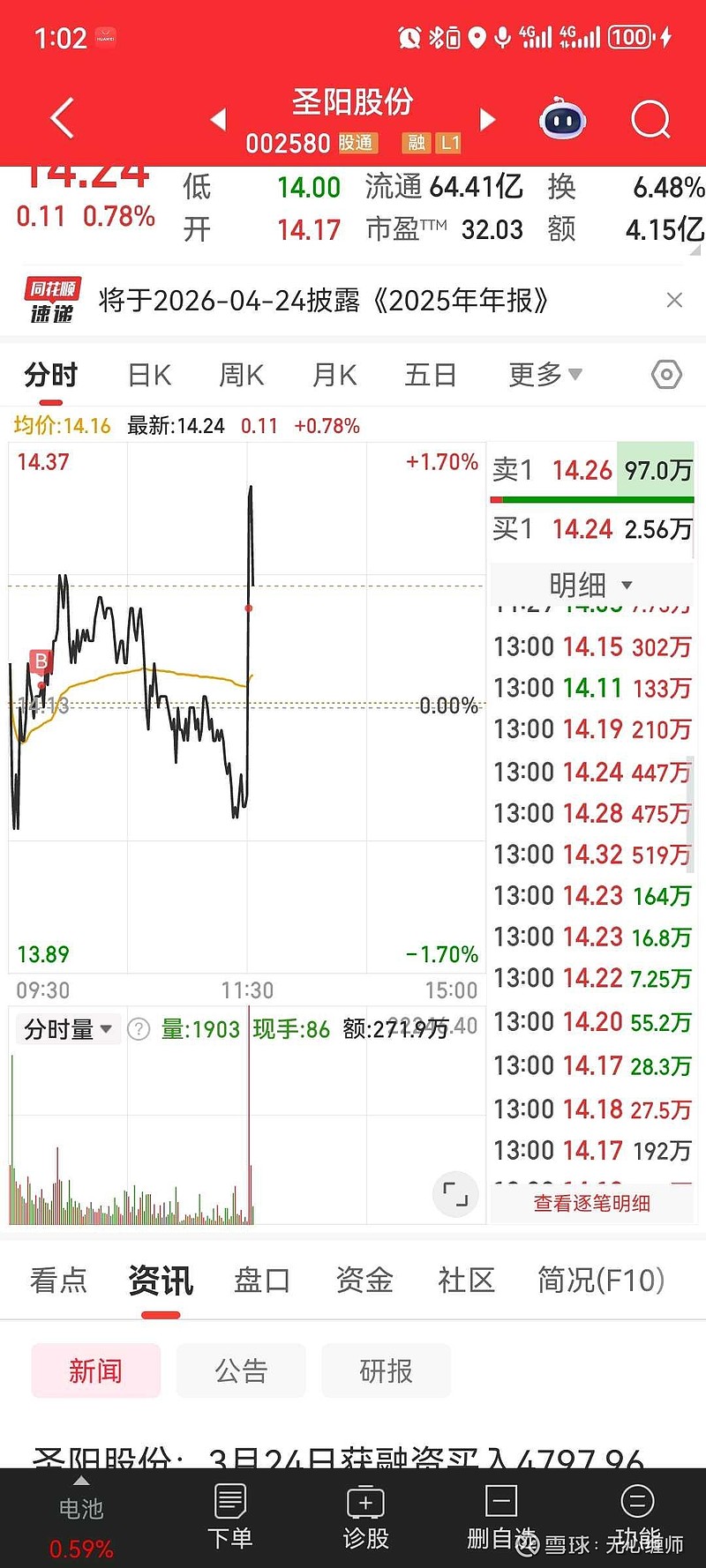 下午开盘瞬间出大单,也不知道咋回事,赶紧加仓。