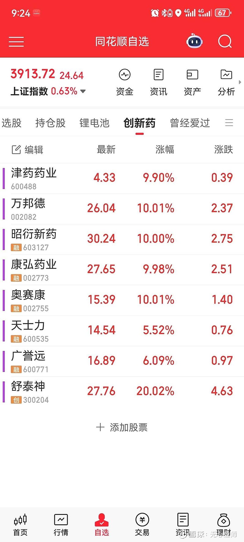 关注这几个低吸机会,行情不一定走出来,但是,如果周一往下砸的话,整理几天还会有冲高动作。主力平铺创新药板块,也是高低切,医药板块整体低位,即使没有大的行情,板块内轮动也能折腾几天,因为位置低,阻力小。$昭衍新药(SH603127)$ $广誉远(SH600771)$ ,这些票提里我自己最喜欢广誉远,和股票没关系,是因为我对中华老字号有天然的好感。