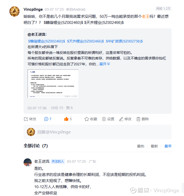 图1:我是因为你瞎吹锂矿50万也不影响需求,我像看啥子一样给你备注上