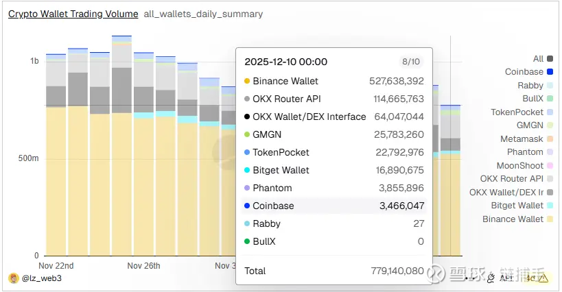随着 meme 币热潮消退,高频交易用户开始大批流向费率更低、激励手段更强的交易所系钱包。在交易所的生态闭环面前,独立玩家的生存空间被不断压缩。