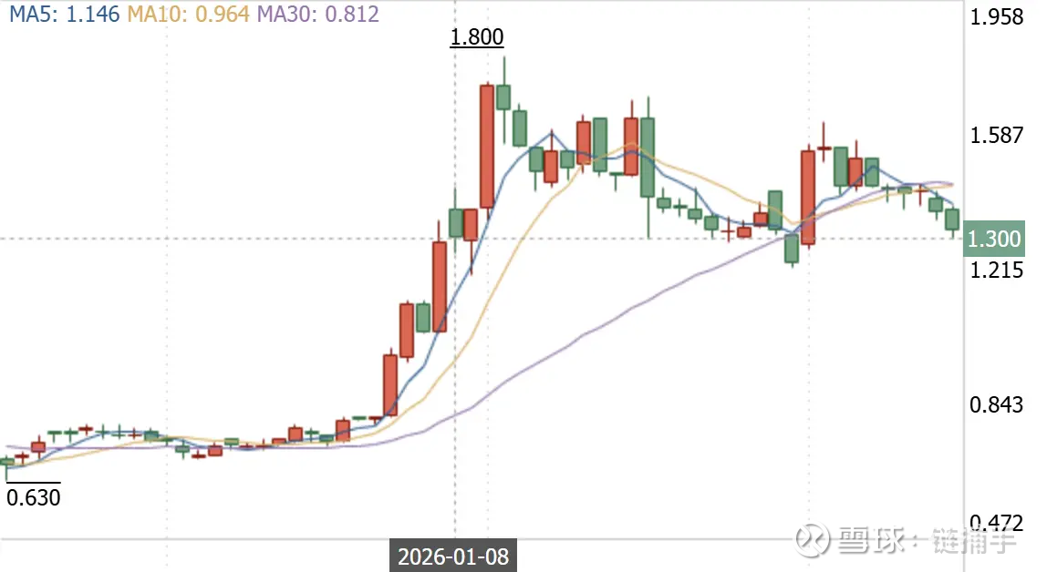 利好也早已表现在股价上。虽然协鑫新能源最早在 1 月 8 日披露与 Pharos 的合作消息,但其股价在一周前就已经在大幅上涨,从 0.8 港元涨到公告日的 1.3 港元,此后最高涨至 1.8 港元,此后一直保持下行态势。在交易市场,这是典型的“老鼠仓”走势。