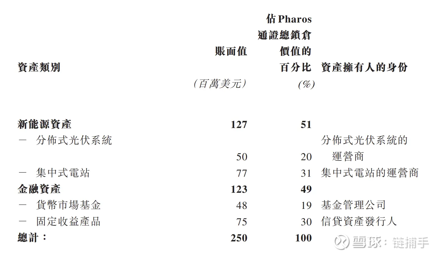 在链上锁仓资产类型方面,该协议披露,目前 Pharos 所有锁仓资产中,51% 来自分布式光伏运营商与集中式电站运营商的新能源资产,49%来自基金管理公司与信贷资产发行人的金融资产。