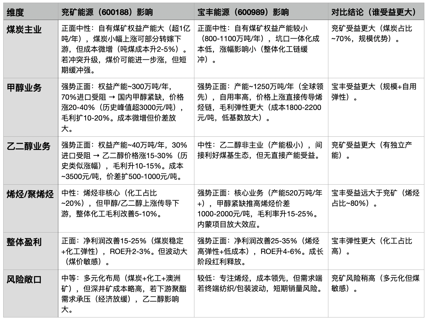 对 $兖矿能源 (600188) 和 $宝丰能源(600989)的影响以正面为主,两家公司均为纯煤基生产商(无进口依赖),进口受阻将导致国内供给紧缺、产品价格大幅上涨(甲醇/乙二醇历史类似事件涨幅20-50%),覆盖成本微增。但需警惕下游需求(如聚酯/烯烃)短期波动。