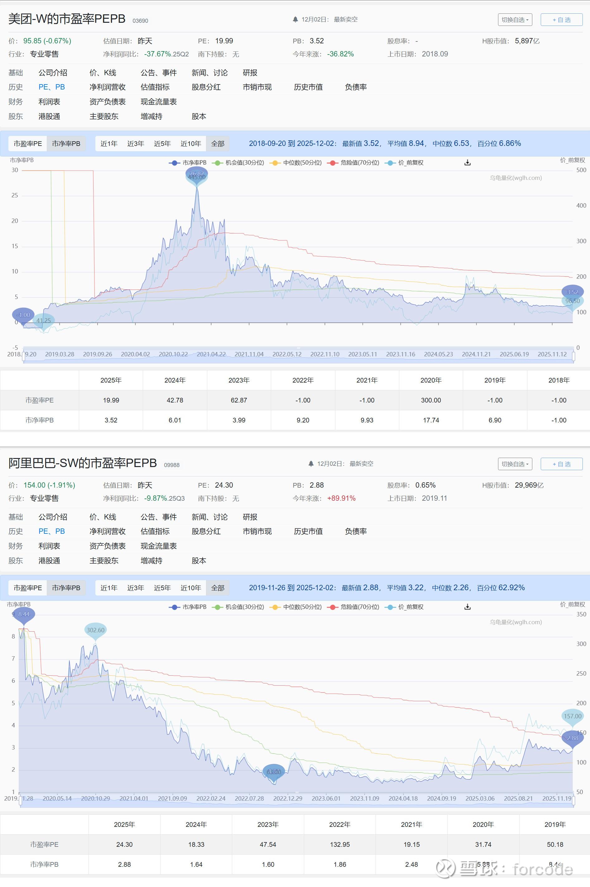 回复@李在赣神魔: 就算打不死对方,也要烧光自己所有钱,这是什么逻辑?是赌气吗?张近东当年也是这个心态,后来怎么样,我们已经看到了。从目前的PB估值来说,阿里巴巴处在60%百分位,美团仅仅在6%的历史百分位。对阿里的预期可能过度乐观,而对美团的预期过度悲观,如果美团股价继续下跌,美团的投资机会(风险机会比)很可能远远好于阿里巴巴。查看图片//@李在赣神魔:回复@forcode:站在你的角度是烧了2000e还没烧死对方所以不值得烧了,站在我的角度是两家一起继续烧下去肯定是阿里更耐烧