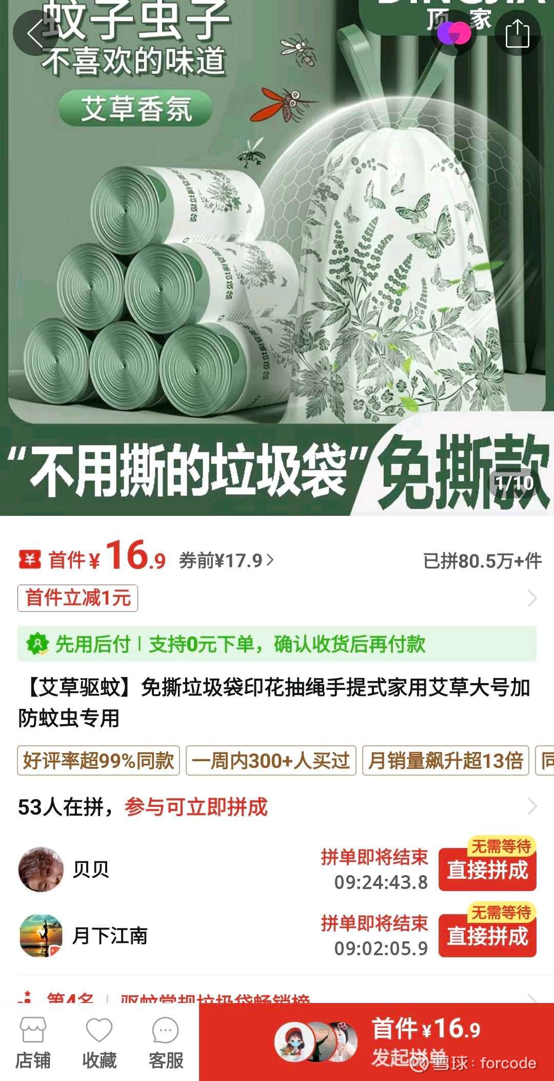回复@forcode: 这个免撕垃圾袋,原料掺入艾草,表面印制图案,带手提带。据说就是拼多多商家发展团队利用大数据赋能产业链搞差异化创新的一个案例。拼多多是扎扎实实在干实事的公司,将中国代工制造业升级换代、向产业链两端附加值更高的环节攀升避免陷入低水平价格战内卷。