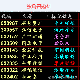7,独角兽题材的中科宇航也已经进入IPO辅导期,相关题材的000987越秀资本要进入自选池观察。002152广电运通题材是昆仑芯。