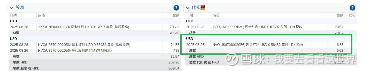 回复@我要去看看这世界: 中国人没有20%这个档位,只有10和27,澳洲人是15和27。姑娘,你这不是20%,而是27,6.63除以24.55=0.27。你下面的替代股息付款,不是诺德的,应该是途牛的。替代股息指的是,你参加了股票增益计划之后,盈透会把你的股票借给做空者,他会支付融券利率(一般比融资利率高百分之二三十),盈透扣下佣金后,都给你。所以你肯定是持有冷门股,被人借走了,根诺德这种大票无关//@我要去看看这世界:回复@奶粉侠:我算了下,是被扣掉了20%的税,不是10%或者27%;那估计我的表格也有问题。要再看看。@剑走偏锋_2023 锋哥也可以看看呢。