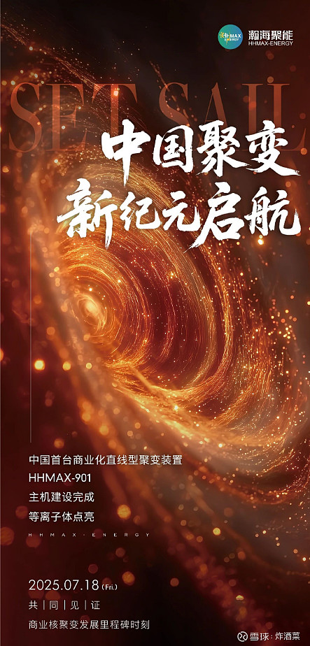 18号,瀚海聚能将开启中国核聚变里程碑时刻:中国首台商业化直线型聚变装置的等离子体点亮