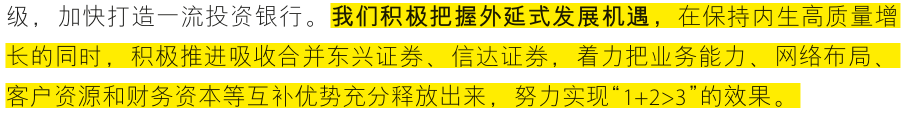 最后说下重点,看下面这种图片,这是中金公司总裁致辞中的一段话,能把这段话放在这里,也算是个利好吧,让所有股东看到这个事还在推进,没有黄。其实细细想想也对,中央汇金、中金公司作为这条街最靓的仔,如果真的取消这次重组合并,可能对中国股市的影响非常之大!!!PS,最近和中金、东兴证券联系过,大概意思是大概率4月份召开二董会,继续等待吧!$东兴证券(SH601198)$ $信达证券(SH601059)$ $中金公司(SH601995)$