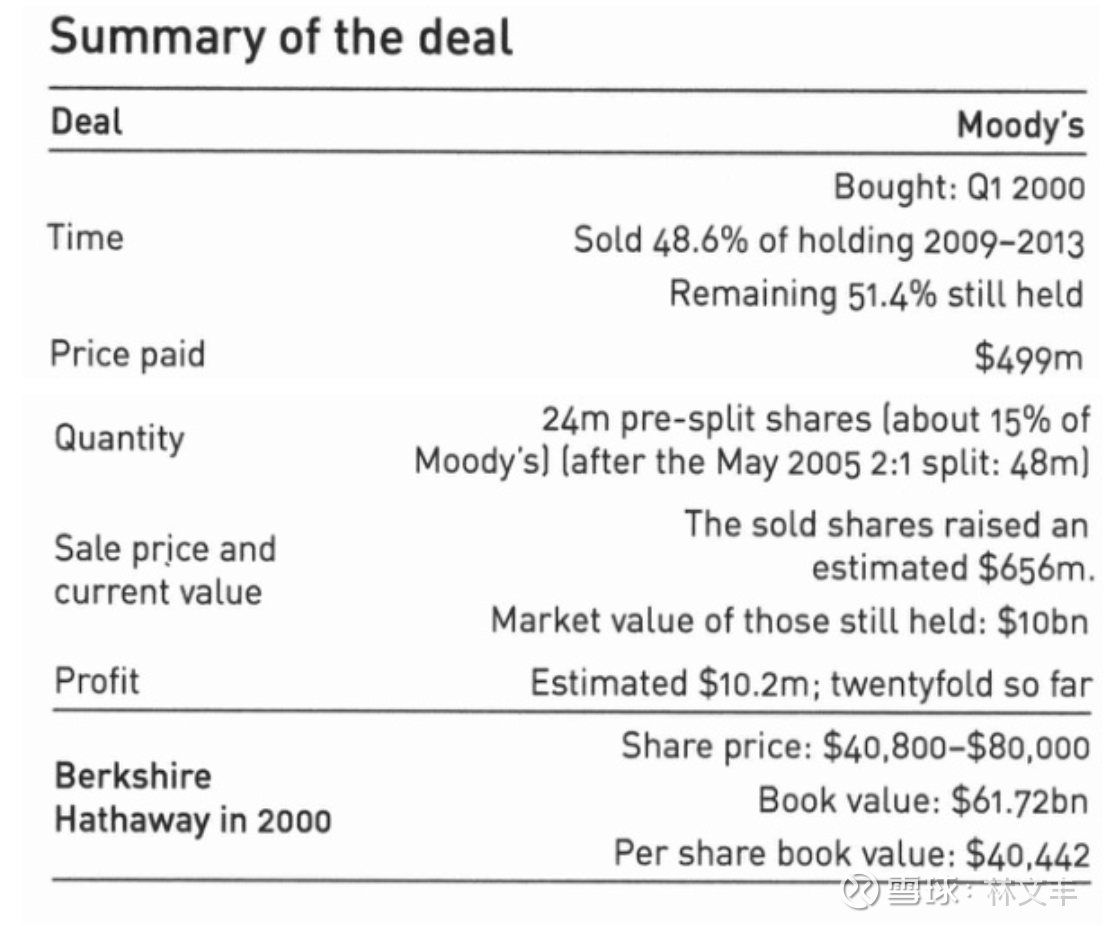 尽管伯克希尔·哈撒韦出售了其购买的近一半(5%)穆迪股份,但由于穆迪一直实行定期的股票回购政策,目前巴菲特持有的穆迪股份比例从约7.5%增加到了13.5%,这使得伯克希尔成为穆迪的最大股东。