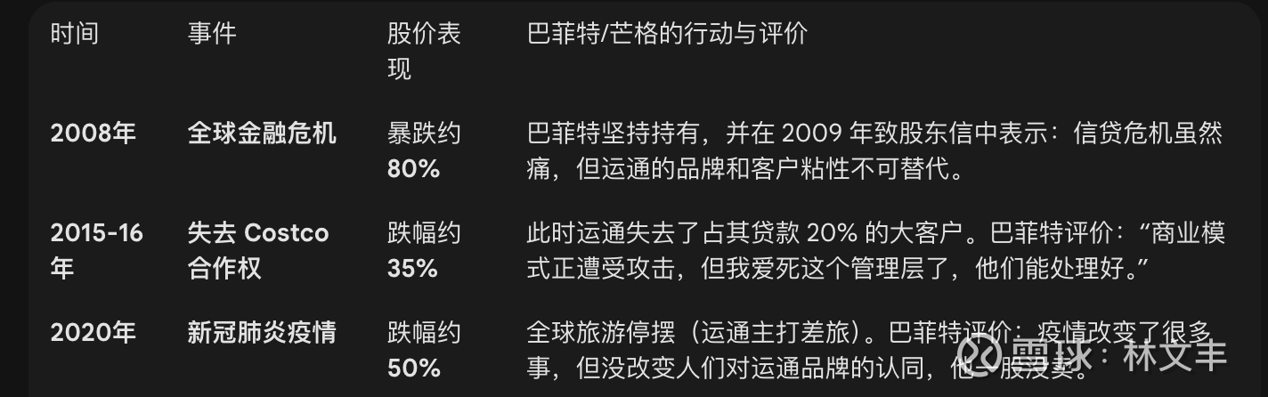 对比: 当富国银行出现系统性造假时,巴菲特表现出了极大的愤怒并最终清仓,因为那是对客户的背信弃义。而运通是在法庭上堂堂正正地与司法部打官司,这在芒格眼中甚至是“勇敢”的表现。