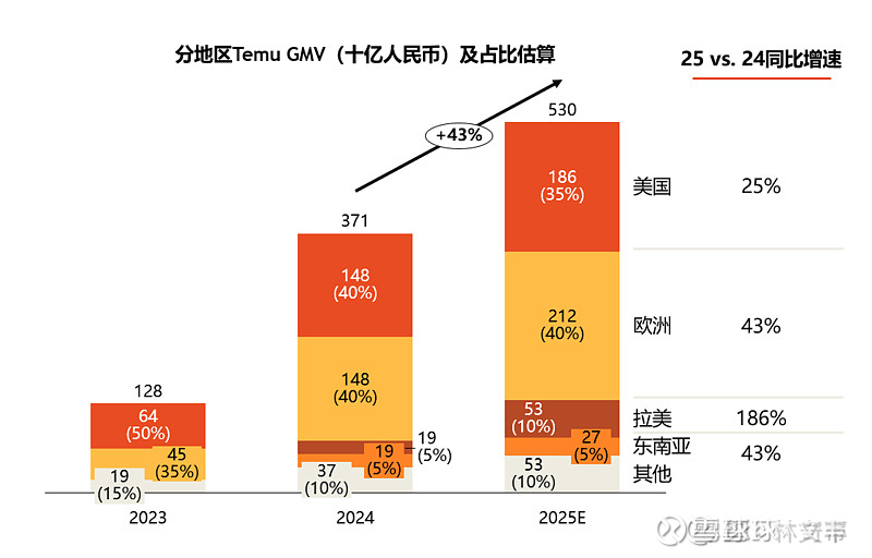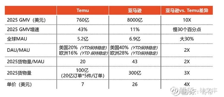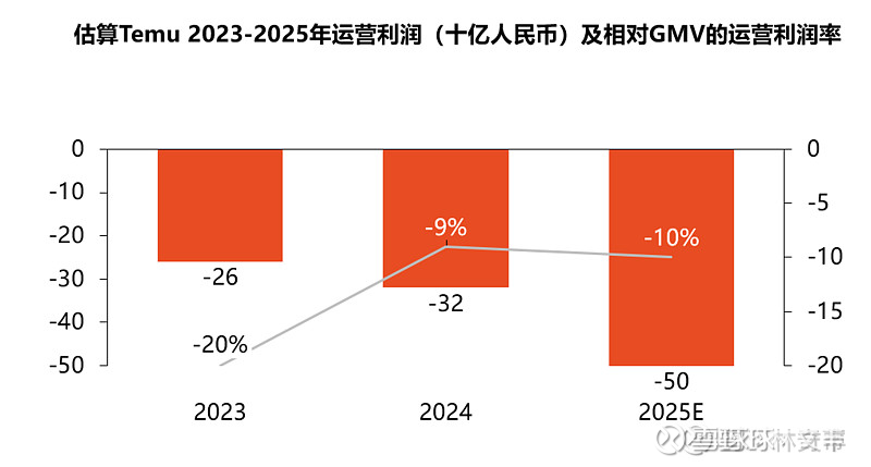 Temu 2025 的GMV ~800 亿美金(同比增长43%),预计2025年运营亏小几百亿