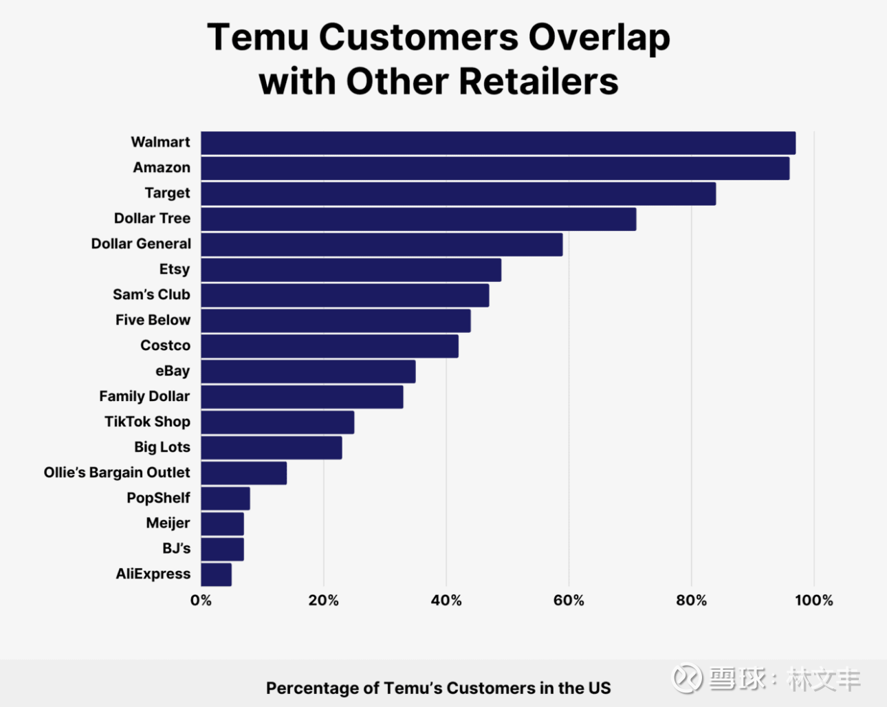 According to Earnest Analytics data, more than 8 in 10 US Temu customers shop at Walmart, Amazon, and Target.