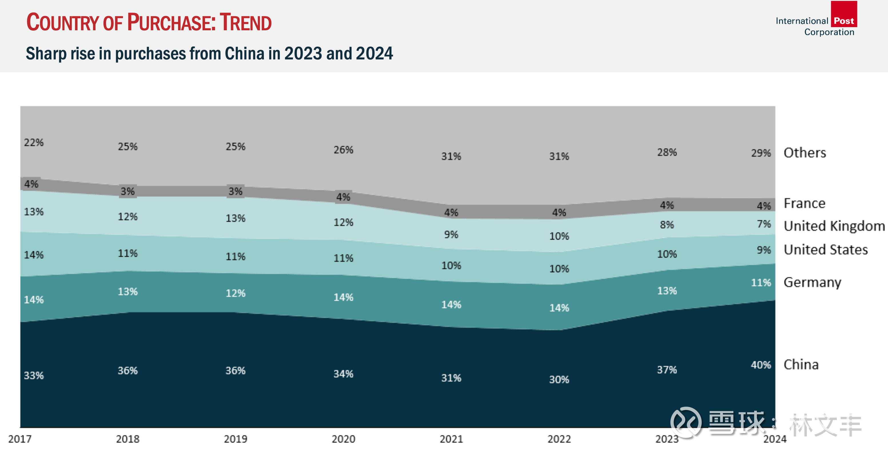 IPC 报告显示,从中国购买的比例在 2023 年至 2024 年间大幅上升。到 2024 年,中国作为购买目的地的份额已达到 40%,稳居全球第一 。在多个国家,中国都是前三大跨境货源地之首。例如,在墨西哥(42%)、西班牙(51%)、德国(61%)和荷兰(51%)等市场,中国货源均表现强劲。物流效率提升:尽管订单量巨大,但从中国发货的物流速度正在变快,这反映出供应链的不断优化。